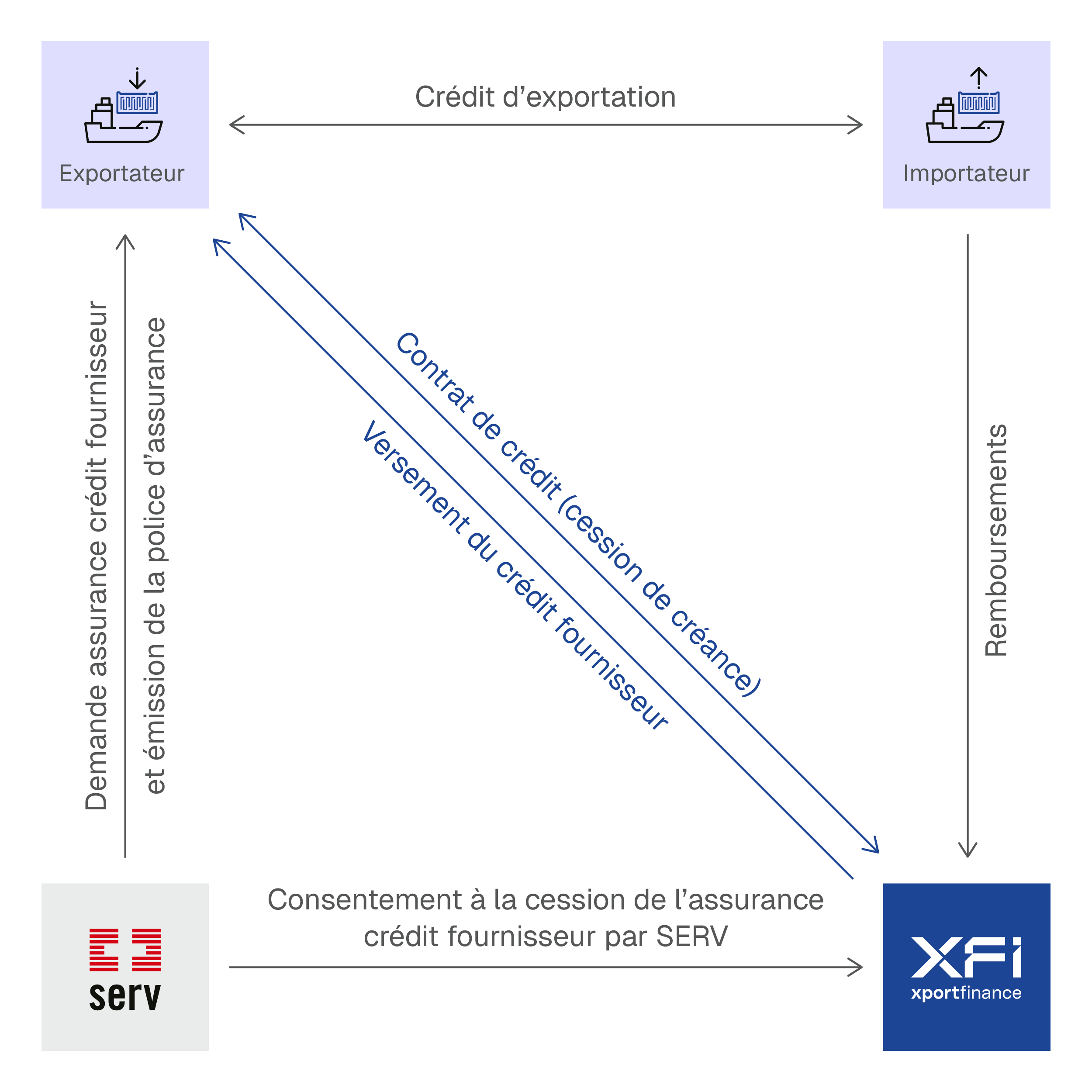 Dans le cadre du crédit fournisseur, l’exportateur cède sa créance issue du contrat de livraison à Xport Finance.